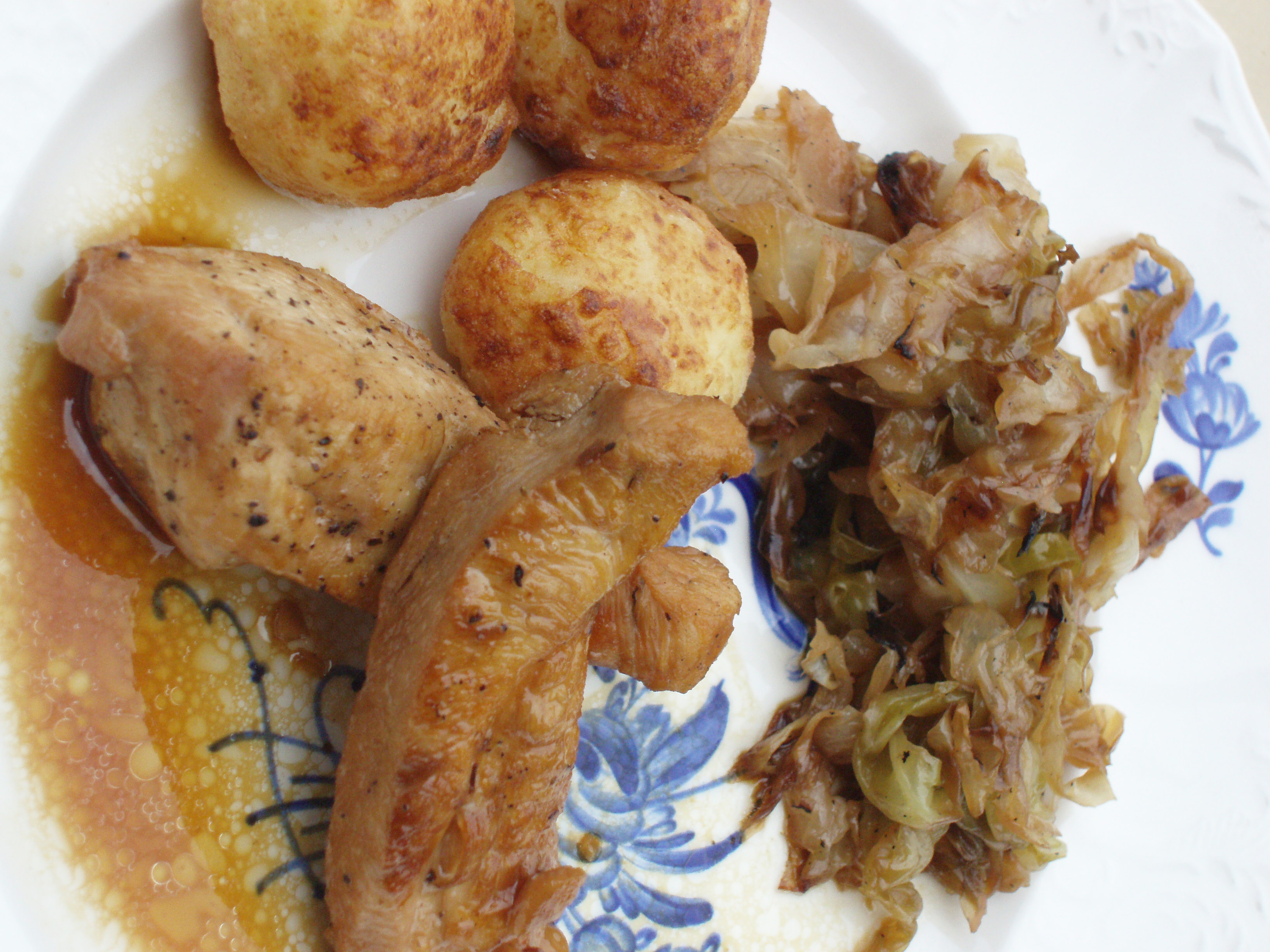 Este sencillísimo pollo lo acompaño con un repollo y un puré que a continuación os cuento: