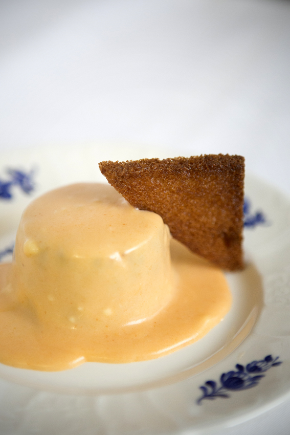 Una vez que tengamos el pudín (yo en esta ocasión los hice individuales) los reservamos en el molde para que no enfríe del todo y hacemos una bechamel con 1l. de leche, 60grs. de harina y 60 grs. de mantequilla o margarina, a la que después de sazonar con sal y una pizca de nuez moscada colorearemos con un chorretón de tomate frito. Para finalizar desmoldáis el pudín, lo cubrís con la bechamel y lo adornáis con unos triangulitos de pan frito. Un beso.