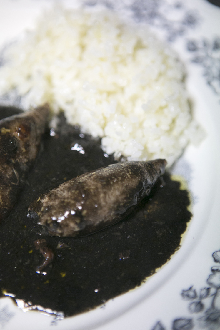 La mar estuvo representada por unos chipirones rellenos de verduritas finamente picadas, sus patitas y un poco de jamón también finamente picado. Cocinados en su tinta, que causaron admiración ,estamalqueyolodiga, entre el elenco vasco de la velada.
