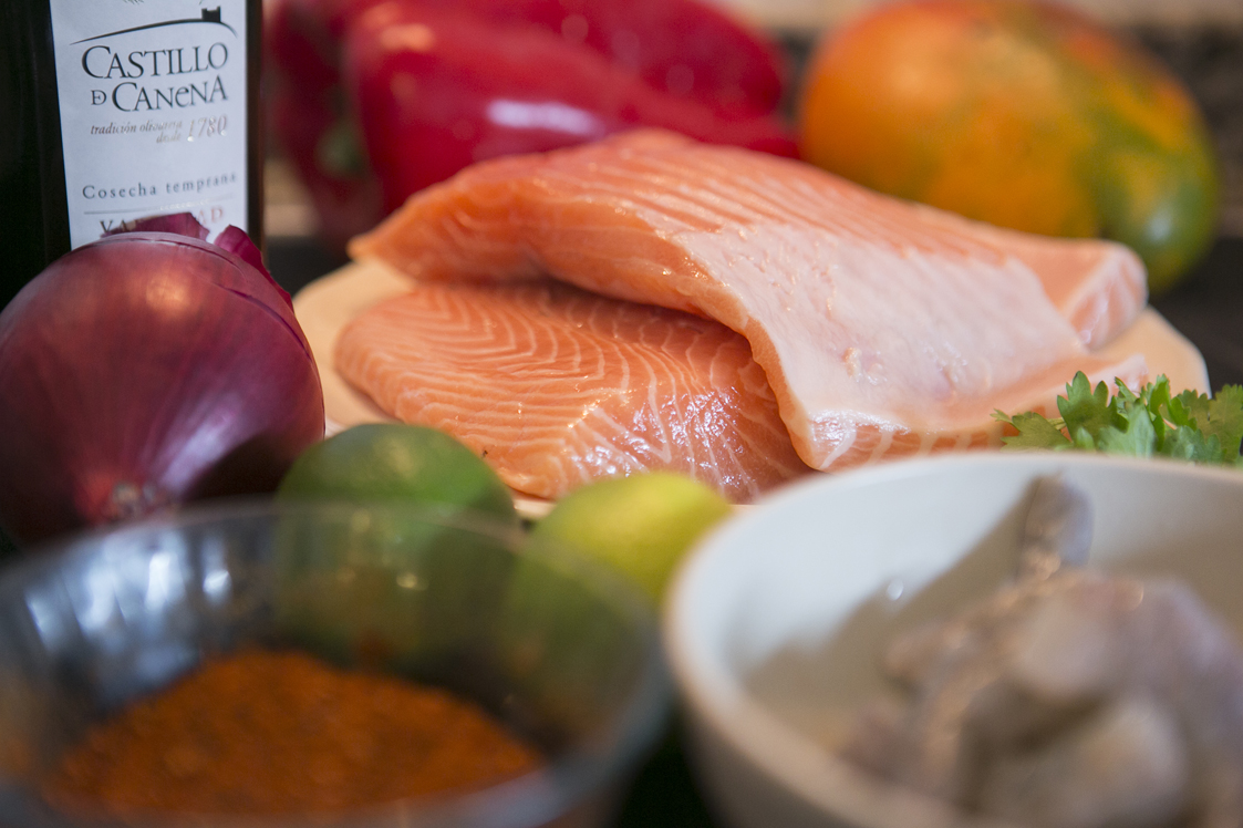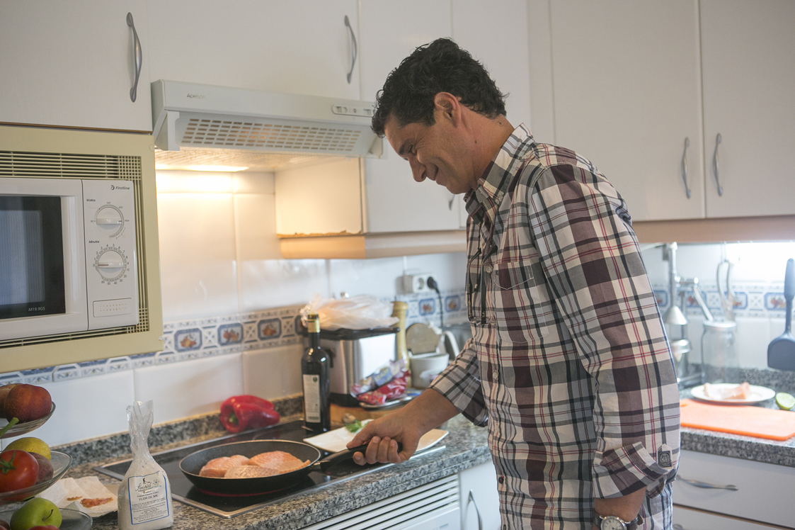 Para elaborar el salmón Jaime se hizo con unos lomos sin piel ni espinas a los que quitó también la parte oscura, para que el resultado sea perfecto. Calentó un poco de aceite en una sartén y con mimo, fue dorando los lomos, con el cuidado de que por dentro ni se pasen ni queden totalmente crudos (el punto cada uno pone el suyo).