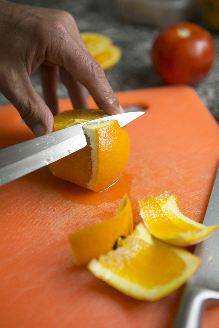 Para terminar con este completo y saludable menú que mejor que unas naranjas con azúcar y canela. Eso si cortadas en gajos con un buen cuchillo, imprescindible en una buena cocina.