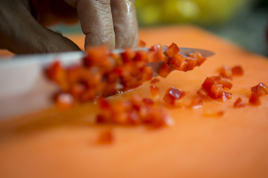 Y procede a hacer lo mismo con un cuarto de pimiento rojo.