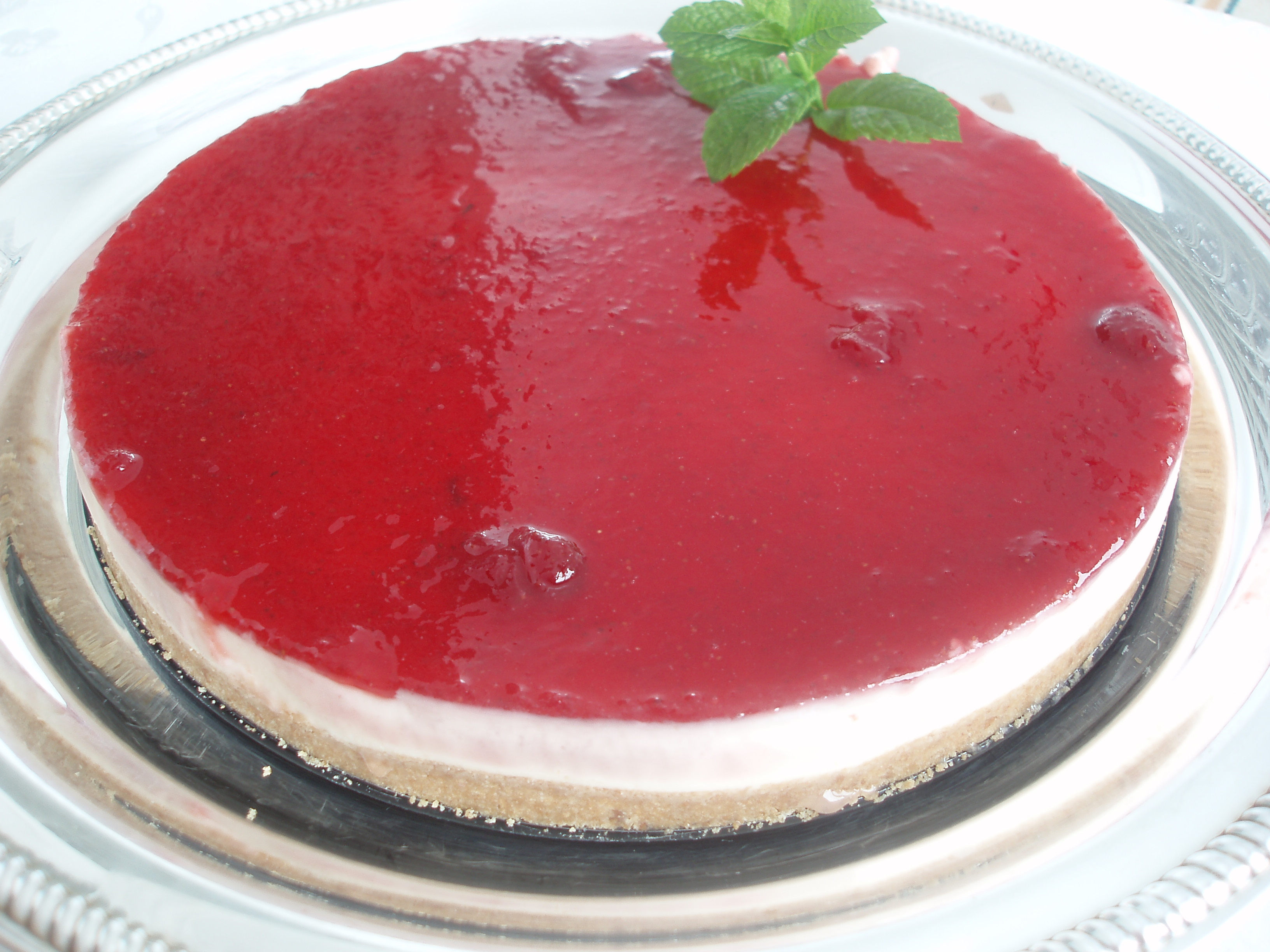Verter esta mezcla encima de la base de galletas y mantequilla y dejar reposar hasta que enfríe. Coger el bote de mermelada y revolverlo con una cucharita, cubrir la tarta con la mermelada de manera uniforme.