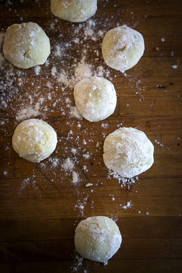 Para rematar el plato le pondremos una bolitas de puré de patatas aromatizadas con curry.