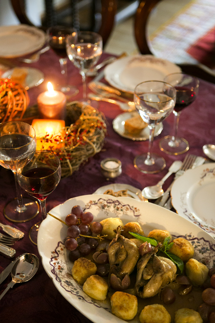 El plato principal que os propongo son unas navideñas codornices a las uvas, receta de mi cuñada Bea, que estoy segura que os van a encantar.