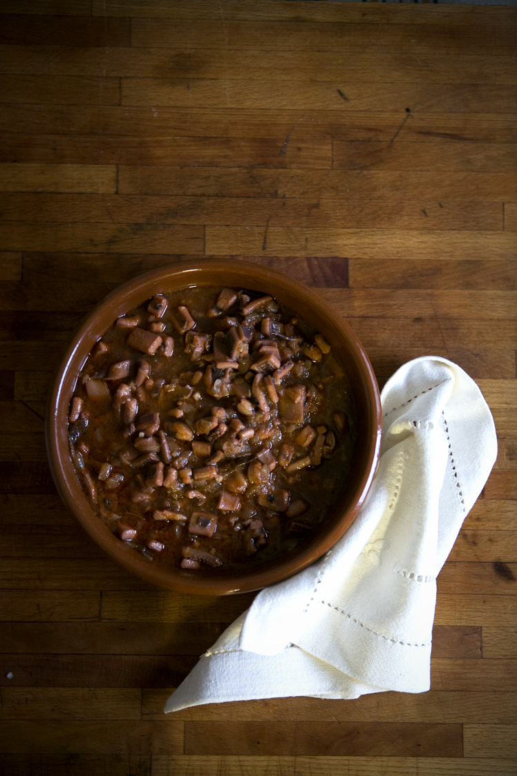 En la pescadería pedid que os limpien y os troceen los potarros en cuadraditos. No hace falta pelarlos, porque como me contaba mi amigo Jose el Píndalo, de Luarca, en la piel está lo que hace que el quiso quede ligado (yo siempre he sido muy obediente).
