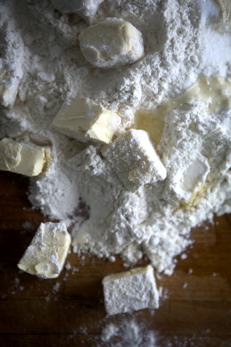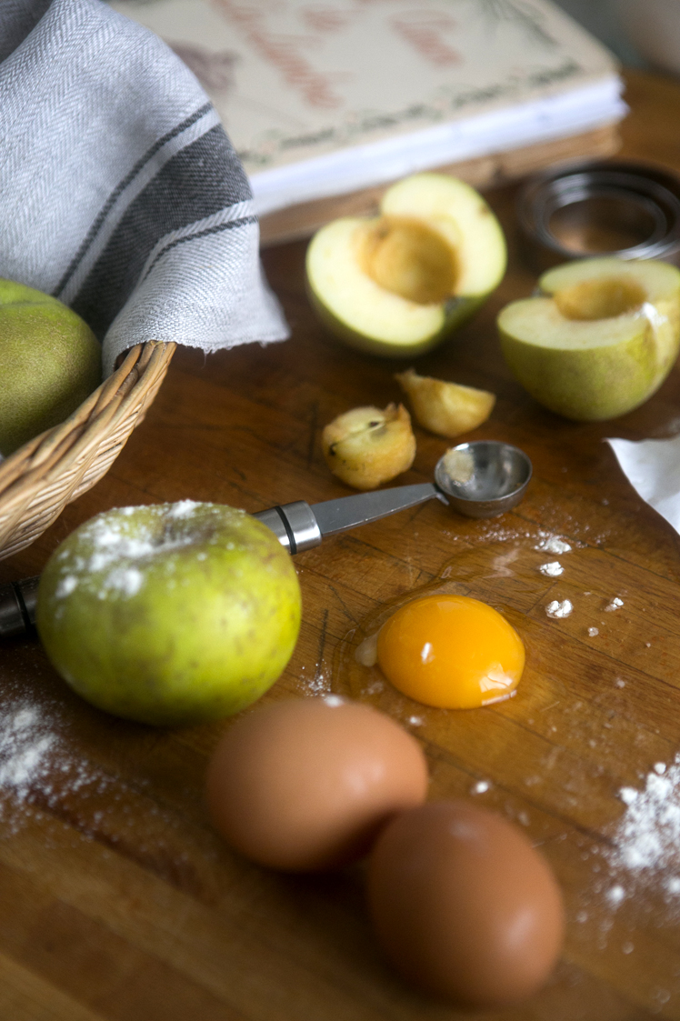 Mientras dejas que las manzanas ablanden haces una masa quebrada: pon en una superficie lisa la harina, haz un hueco en el centro y casca ahí el huevo, échale la pizca de sal, el azúcar y la mantequilla a temperatura ambiente.