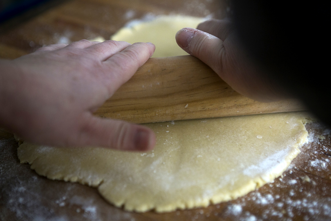 Amasa bien estos ingredientes hasta obtener una bola compacta. Enharina la superficie lisa y con la ayuda de un rodillo de cocina extiende la masa.
