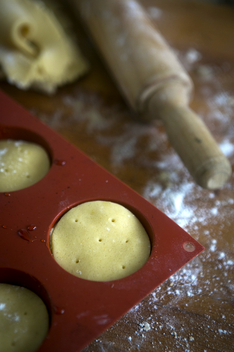Corta la masa formando un círculo del tamaño de la tartera que estamos utilizando para caramelizar las manzanas. Yo en este caso corté círculos del tamaño de los moldes de silicona individuales que he escogido para la ocasión.
